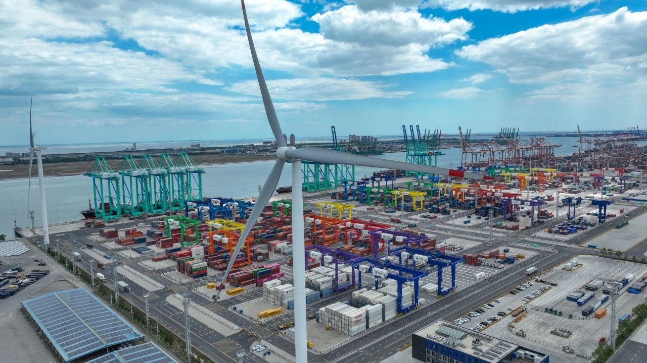 在能源供應側,今年以來天津港集團大力開展風能等新能源項目建設,在北疆港區、南疆港區、東疆港區新建成7臺風機,累計投運15 臺風機,新能源發電系統裝機容量達78兆瓦,年發綠電能力近1.8億千瓦時,源源不斷為港口生產輸送清潔電能。